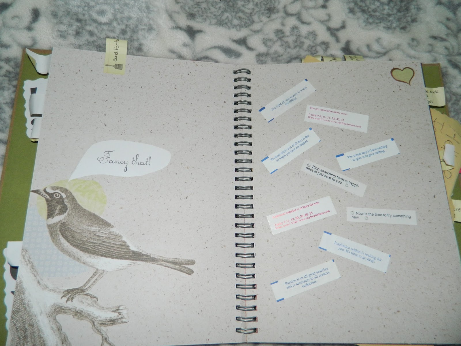 I wanted to share with you some of the pages I've put together. I did not include pictures of some of the cooler background pictures that come in the book though, such as a page full of dice, silverware, birds in a very blue sky, bookshelves, and various other beautiful pictures. But these books are beautiful, awesome, and so unique!